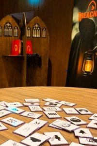 Given a mysterious velvet bag filled with various icons inside, Teams must then, one at a time, visit the confession booth where they will find a riddle! After memorizing it, they return to their team and recite it aloud. Can you solve the riddle and match the icon in time?